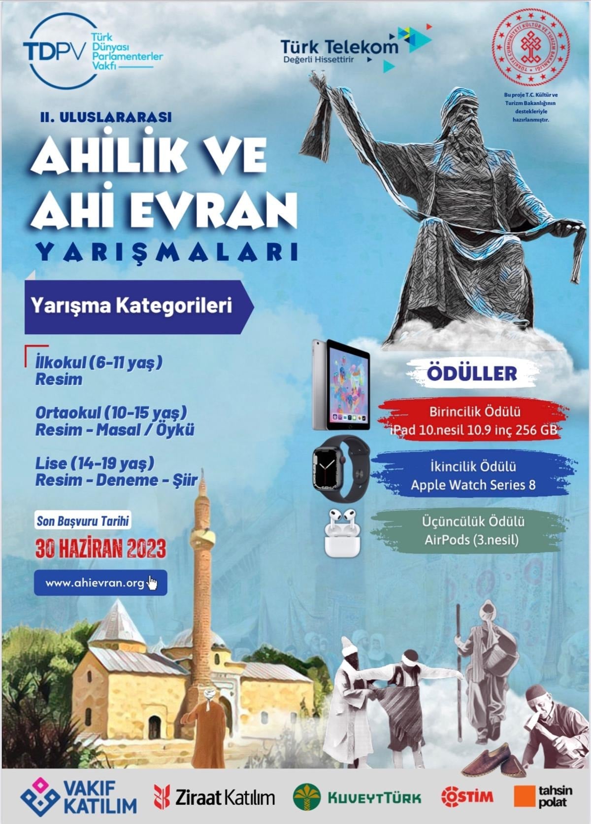Bu inançla özellikle çocuklarımızın ve gençlerimizin Ahiliği yakından tanımaları için dünya genelinde açtığımız 2. Uluslararası Ahilik ve Ahi Evran Yarışmalarımız için son başvuru tarihimiz 30 Haziran 2023’tür.