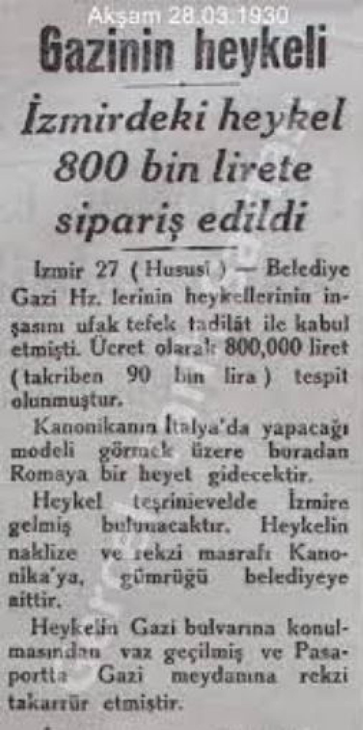 O yıllarda heykel yaptırmada görülen yoğunluk çerçevesinde, Türkiye'ye gelen İtalyan heykeltıraş Pietro Canonica, Ankara Etnografya Müzesi önündeki heykel, İzmir Cumhuriyet anıtı ile Samsun'da Heinrich Krippel tarafından yapılan heykele ilave olarak – daha sonra yıkılacak olan - Kurtuluş Savaşı anıtını yapmıştı. Canonica ayrıca, Taksim Meydanındaki Cumhuriyet anıtını da inşa etmişti. Devlet, bu anıt için heykeltıraşla 16 bin 500 sterline anlaşmış, ancak meblağın yüksekliğinden dolayı ödeme biraz gecikmişti. Bunun üzerine devreye İtalya Dışişleri Bakanlığı girmiş, sonunda Canonica'nın ödemesi biraz geç de olsa yapılmıştı.