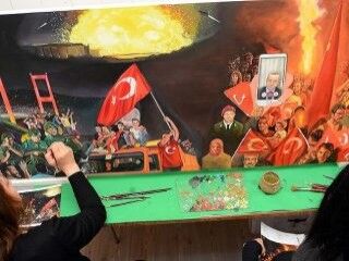 FETÖ'nün darbe girişimi sırasında yaşananlar ve halkın darbecilere karşı verdiği mücadele, iki resim eğitmeni tarafından yağlı boya tablolarda ölümsüzleştirildi.