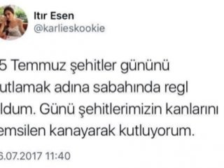 15 Temmuz'la dalga geçip, küstah ifadeler kullanan Itır Esen, gelen haklı tepkiler üzerine hesabını askıya almak zorunda kaldı.