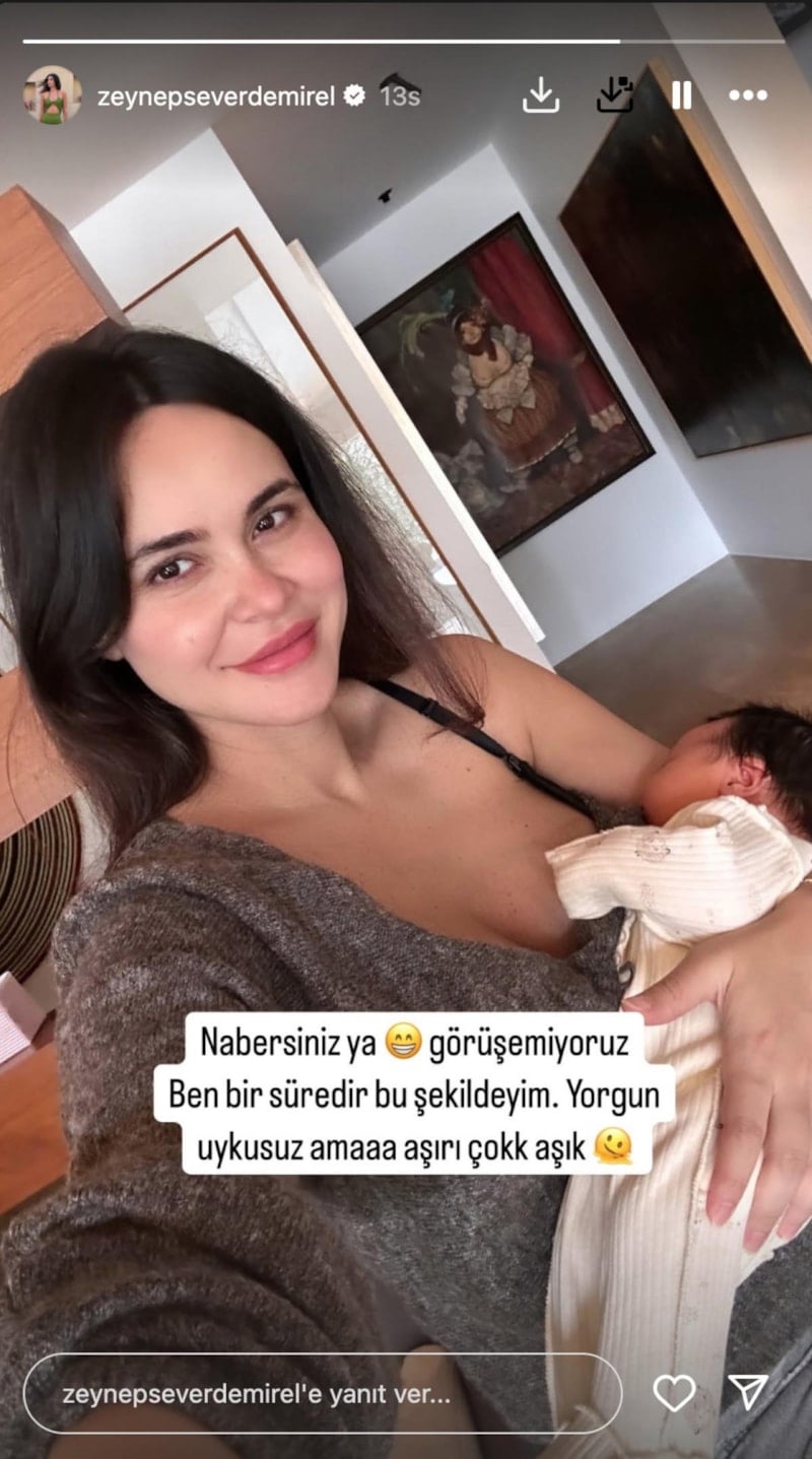 Zeynep Sever, Instagram gönderisinde kucağında bebeğiyle poz verip "Nabersiniz ya, görüşemiyoruz. Ben bir süredir bu şekildeyim. Yorgun, uykusuz ama aşırı çok aşık." dedi.