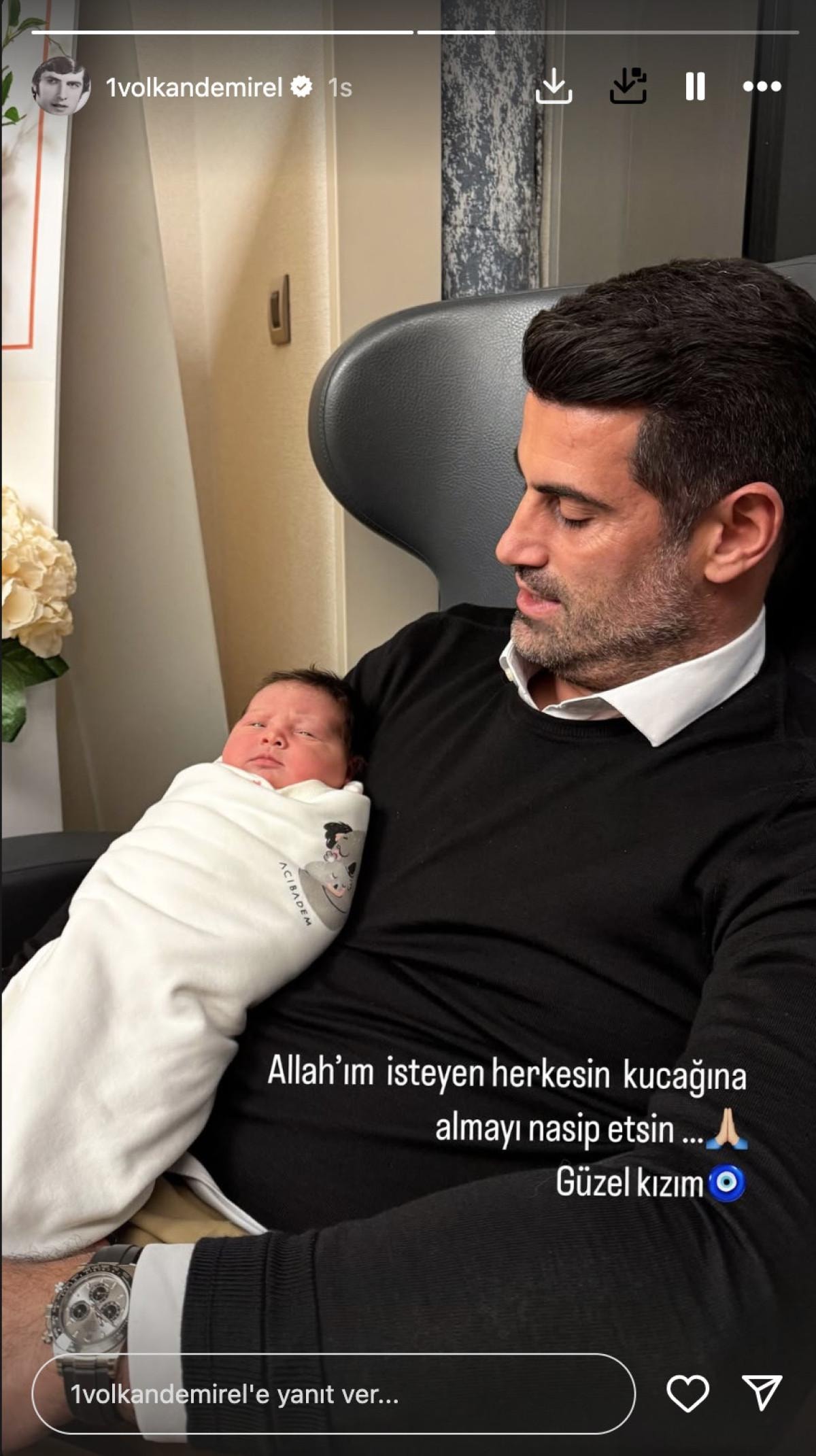 Baba olmanın mutluluğunu yeniden yaşayan Volkan Demirel, "Hoş geldin" mesajıyla sosyal medya hesabından güzel haberi paylaştı. Demirel çifti, üçüncü çocuklarına "Yasmin" adını verdi.