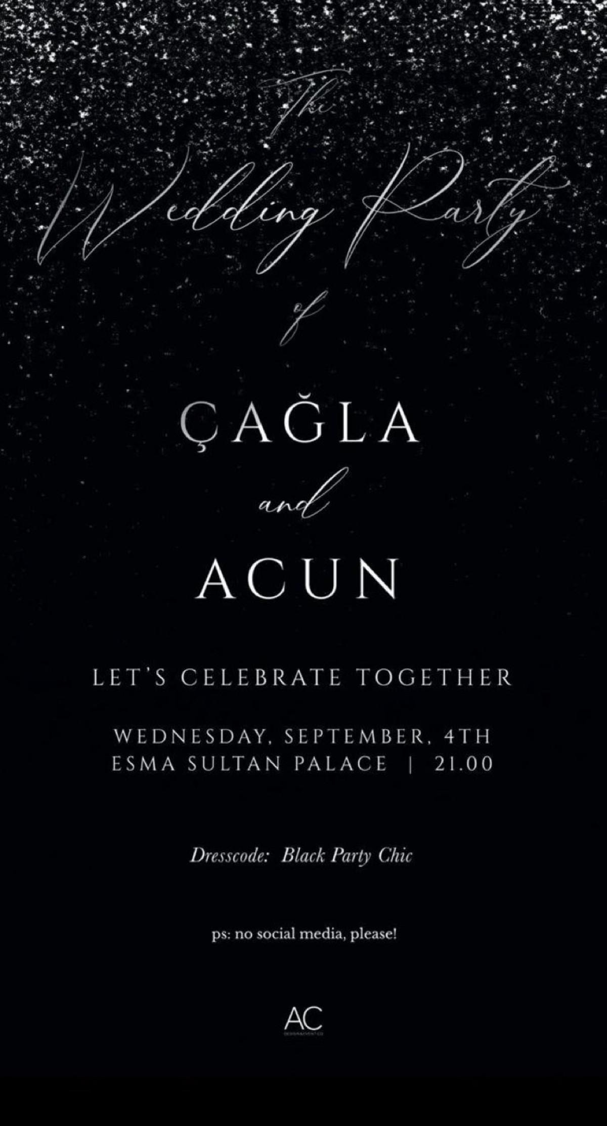 Merakla beklenen düğünün davetiyesi de ortaya çıktı. Acun Ilıcalı, sade, siyah fona yazılı bir dijital nikah davetiyesi hazırlattı ve yakın çevresine gönderdi.