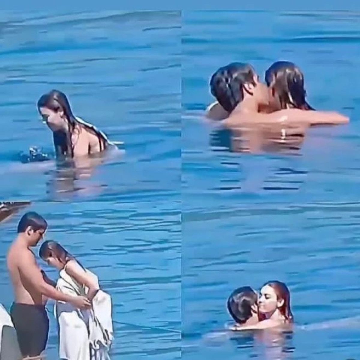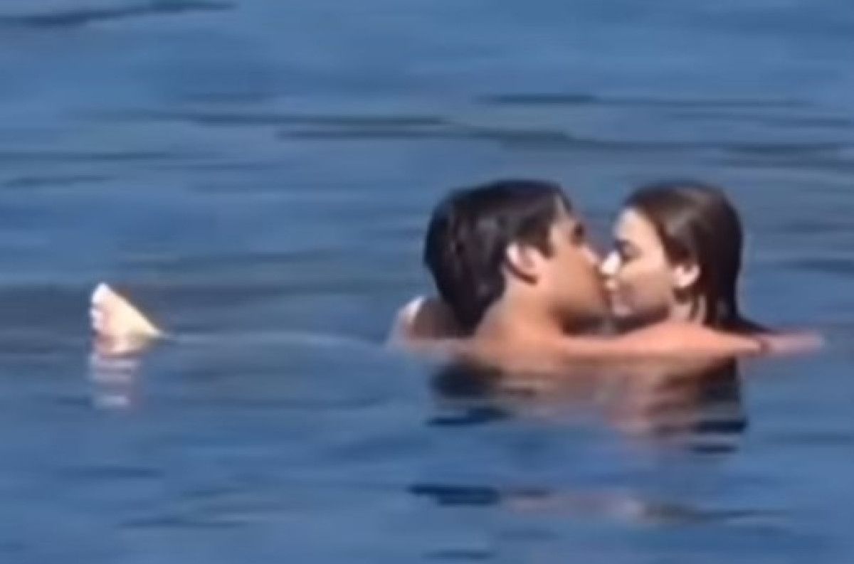 Aşkları belgelenen çiftin, denizde romantik anlar yaşadığı gözlendi.