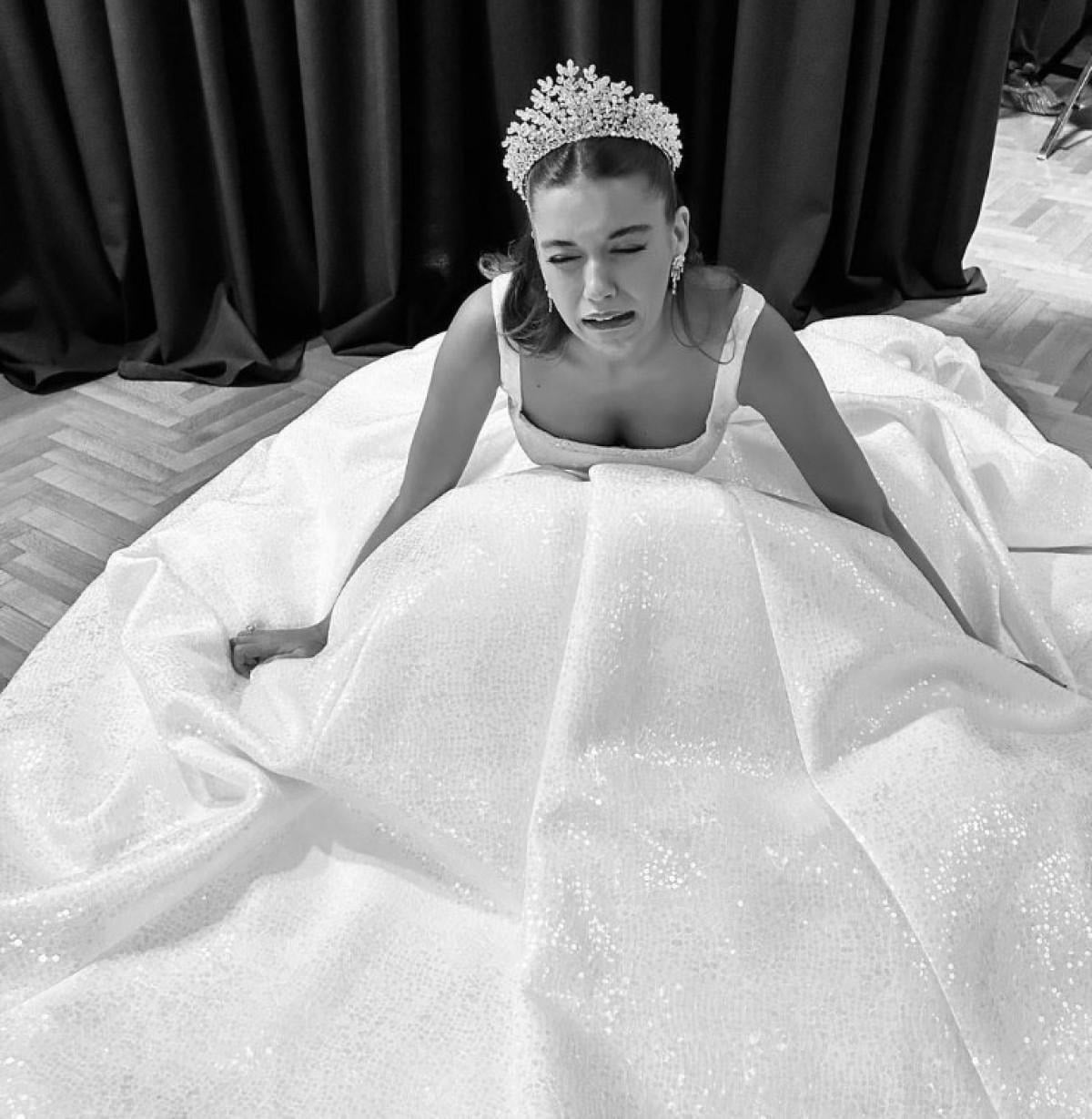 Afra Saraçoğlu sosyal medya hesabından paylaştığı gelinlikli karelerine, "Kariyerim boyunca o kadar cok giydim ki ruh halim ektedir…