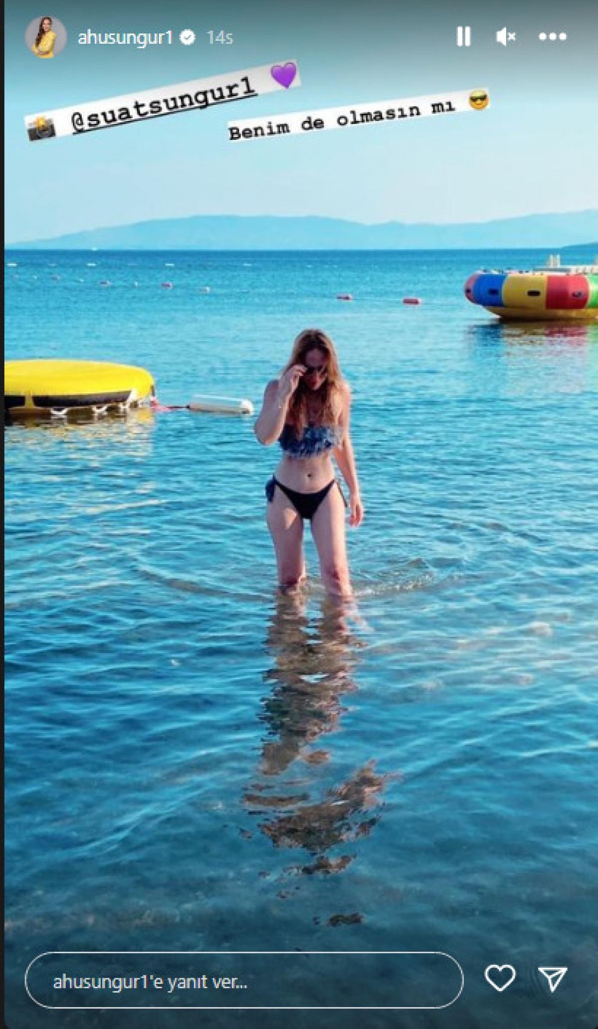 Ahu Sungur ilk kez tatilinden bikinili paylaşım yaptı. 42 yaşındaki oyuncu, formda fiziğiyle genç kızlara taş çıkardı.