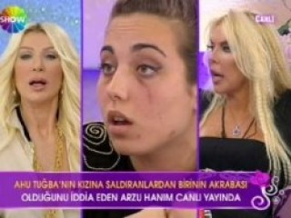 Programda Ahu Anjelik Alojtonj, neden ve nasıl saldırıya uğradığını detaylarıyla anlattı. Canlı yayına görgü tanığı olduğunu söyleyen Arzu Hanım bağlandı. Olayları bir de Arzu Hanım anlatmaya başlayınca Ahu Tuğba'nın kızı Anjelik sinirlerine hakim olamadı ve; "Sen beni tanımadan konuşuyorsun. Benim namusum söz konusu. Alın bu kadını yayından. Sen de kimsin? Sen sana söylenini anlatıyorsun. Benden sana tavsiye maşa olma, kendin ol. Benim namusuma kimse laf söyleyemez." dedi.