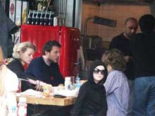 Alara Koçibey, çocukları ve sevgilisi Bebek'teki bir mekânda oturup yemek yiyip sohbet etti. Siyah kazağının kapüşonunu başından hiç çıkarmayan ve masaya da ters oturan Yasemin Paris, annesinin Anneler Günü'nü dudağına kondurduğu öpücükle kutladı.