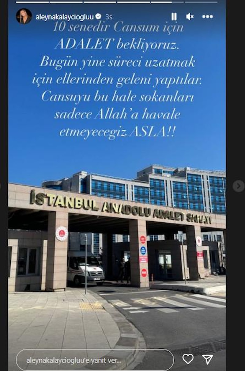 "10 senedir Cansum için ADALET bekliyoruz. Bugün yine süreci uzatmak için ellerinden geleni yaptılar. Cansu'yu bu hale sokanları sadece Allah'a havale etmeyeceğiz ASLA!!"