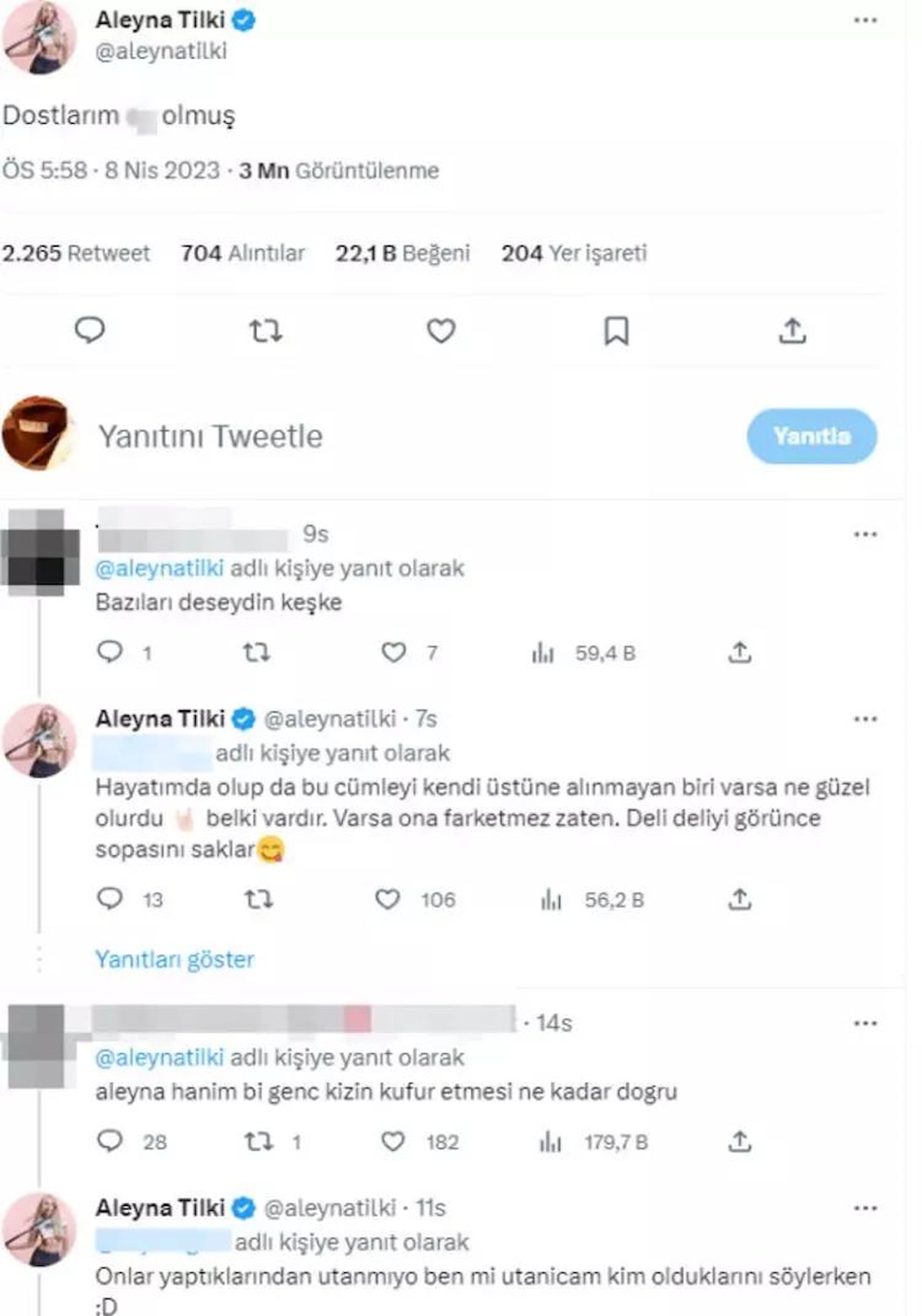 Genç şarkıcı, Twitter hesabından küfürlü bir paylaşım yaptı. Twitter hesabından "Dostlarım o.. olmuş" yazan Tilki, birilerine ağır göndermede bulundu.