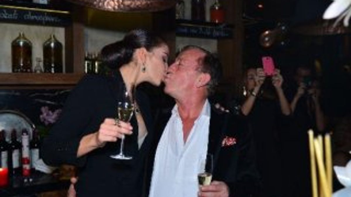 Kutlamada bir ara Ağaoğlu ile sevgilisi dans etti. Topuklu ayakkabı giyen Larina'nın boyu uzun kalınca, Ağaoğlu'nun ricasıyla pistin ortasında ayakkabılarını çıkaran manken dansına yalınayak devam etti.