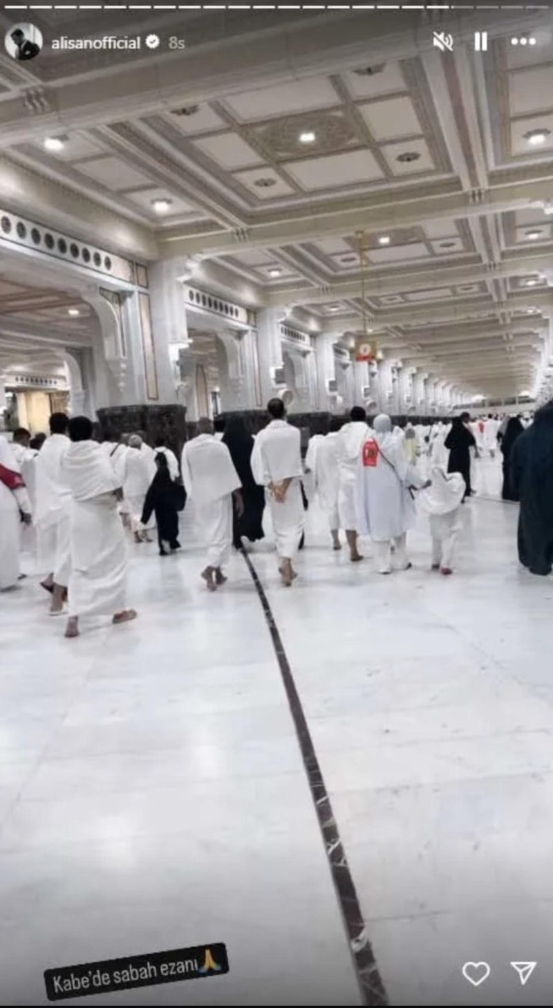 Alişan eşi ile verdiği pozu; "Allah'ım sana şükürler olsun 3. kez buraları görmeyi bana kısmet ettiğin için, bu mübarek kandil gününde burada olmayı kısmet ettiğin için, eşimle birlikte Umre yapma fırsatı verdiğin için... Şükürler olsun Allah'ım...