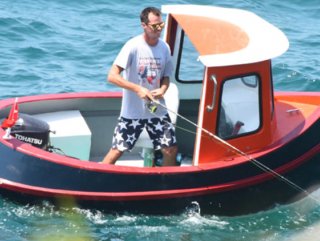 Yaz aylarını Bodrum'da geçiren Alp Kırşan, önceki gün kendi tasarladığı ilginç teknesiyle balığa çıktı.