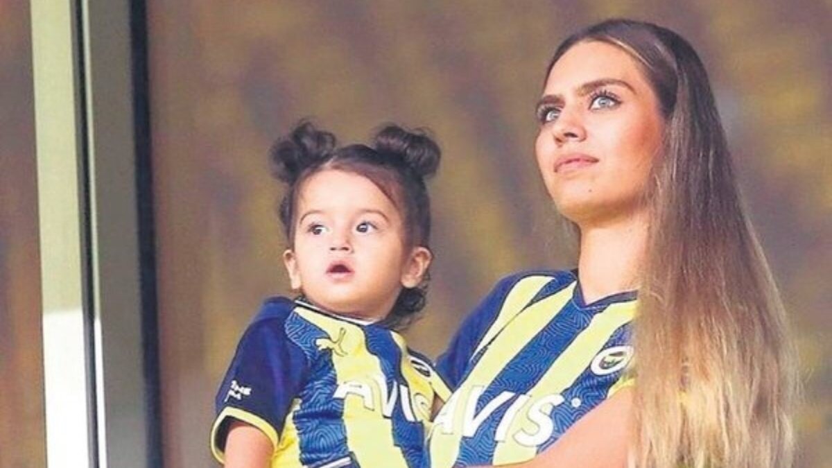 Maçı kızı Eda ile birlikte izleyen Gülşe'nin, Fenerbahçe forması giymesi dikkatlerden kaçmadı.