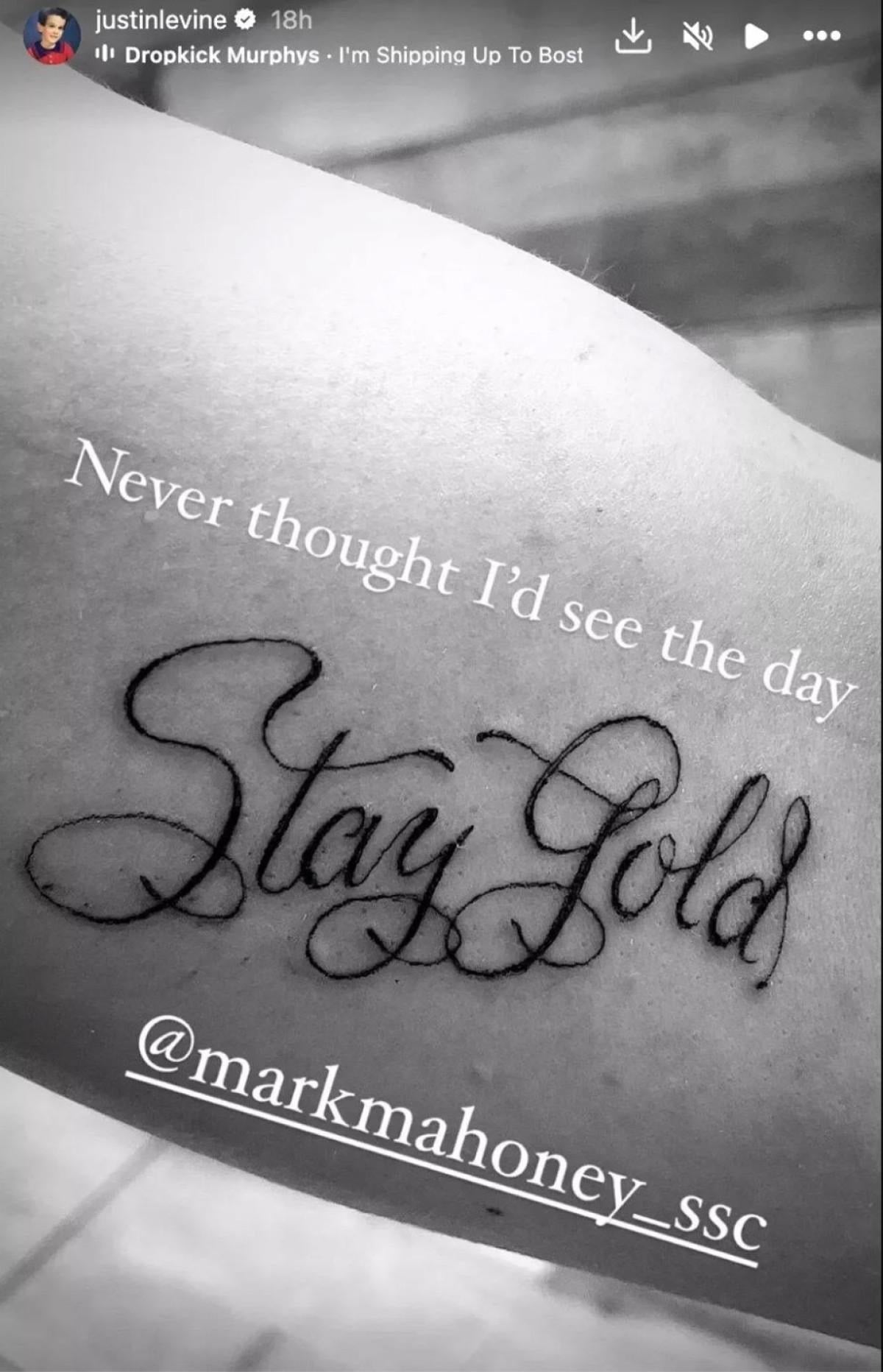 Jolie, "Kızım ile The Outsiders'da geçirdiğimiz zamanı hatırlatan 'Stay Gold' yazan bir dövme yaptırdım." dedi.