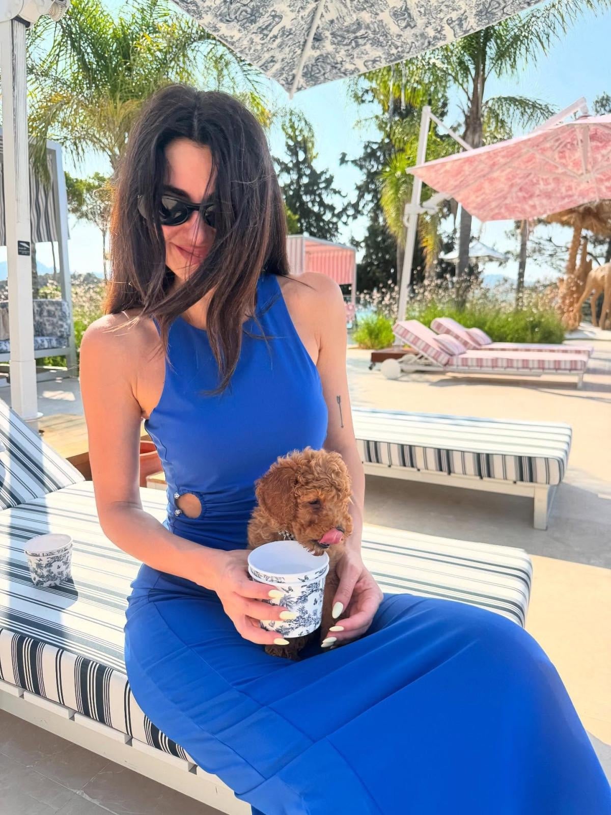 Nesrin Cavadzade'nin mavi elbiseli ve mayolu pozları kısa sürede beğeni ve yorum yağmuruna tutuldu.