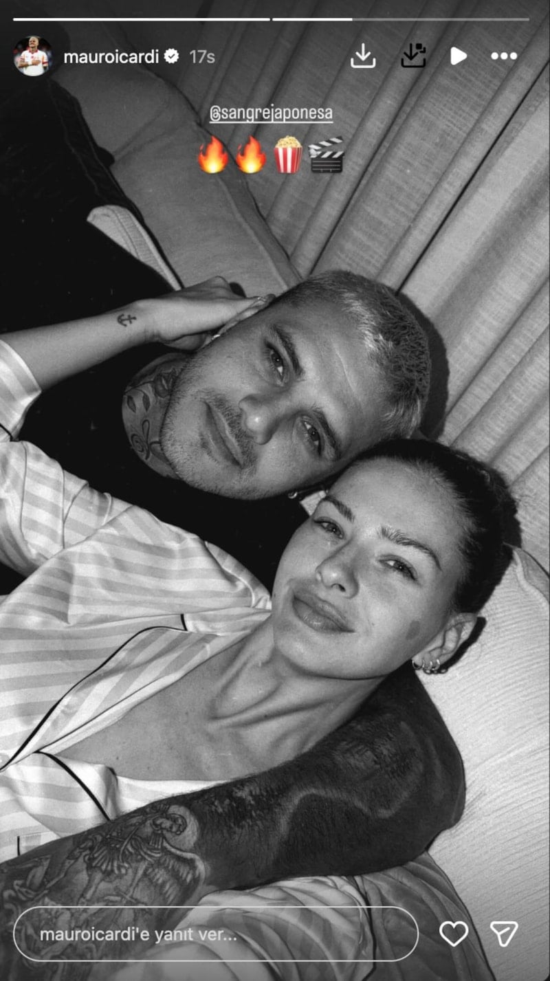Çift, dün akşam sinema keyfi yaptı. Evde baş başa zaman geçiren ikili, romantik poz vermeyi de ihmal etmedi. Icardi, sevgilisiyle keyif yaptığı anları alev ve mısır emojisiyle paylaştı.