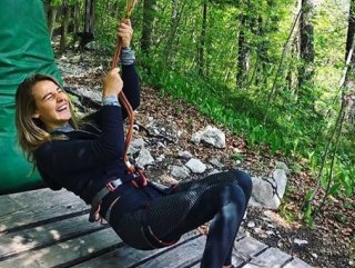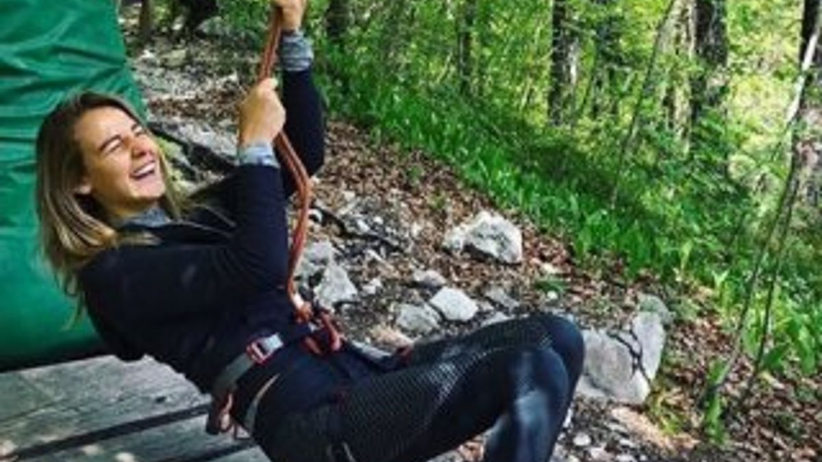 'Zipline' yaparak kendisini metrelerce yükseklikten bir ip aracılığıyla boşluğa bırakan sosyetik güzel, bu sırada çekilen karelerine de "Mutlu olduğunuz şeyi yapın." diye not düştü.