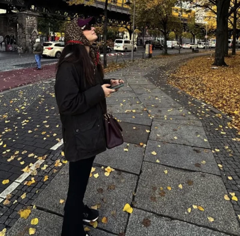 Berlin sokaklarında yürüyüş yaptığı ve kahve içtiği anları yayınlayan Turan, makyajsız haliyle de dikkati çekti.