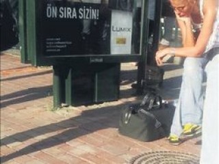 Eski manken Duygu Ulaş Zincirlikuyu'da otobüs durağında otobüs beklerken fotoğraflanmış.