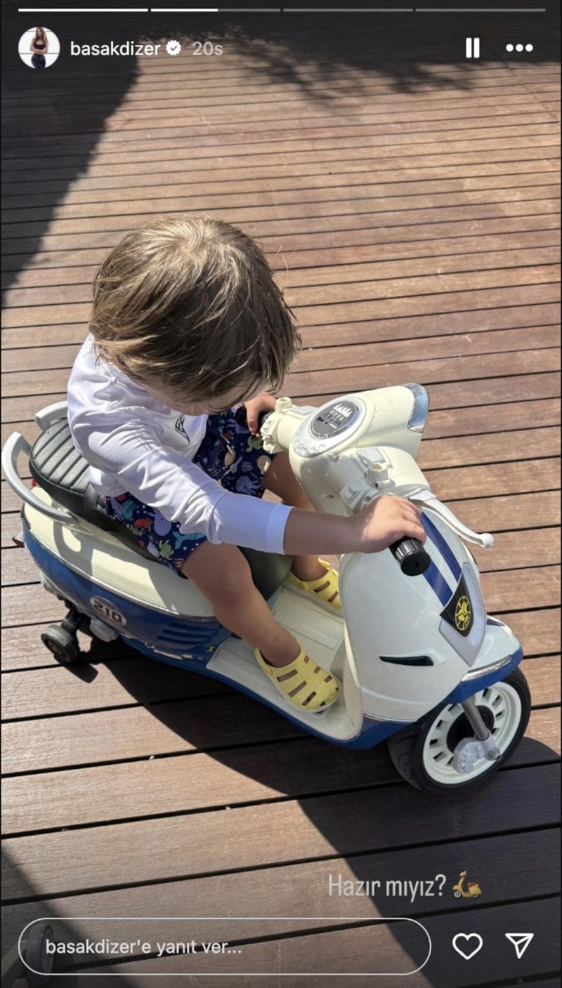 Başak Dizer, oğlu Kurt Efe'nin oyuncak motosikletle turladığı anları sosyal medya hesabından yayınladı. Küçük Kıvanç'a yorum yağdı.