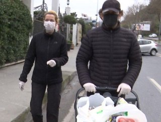 Tedbiri elden bırakmayan ünlü çift, maske, eldiven takmayı ihmal etmedi. İnsanlarla araya mesafe koyup yürüyen çift, 15 gündür evden çıkmadıklarını söyledi.