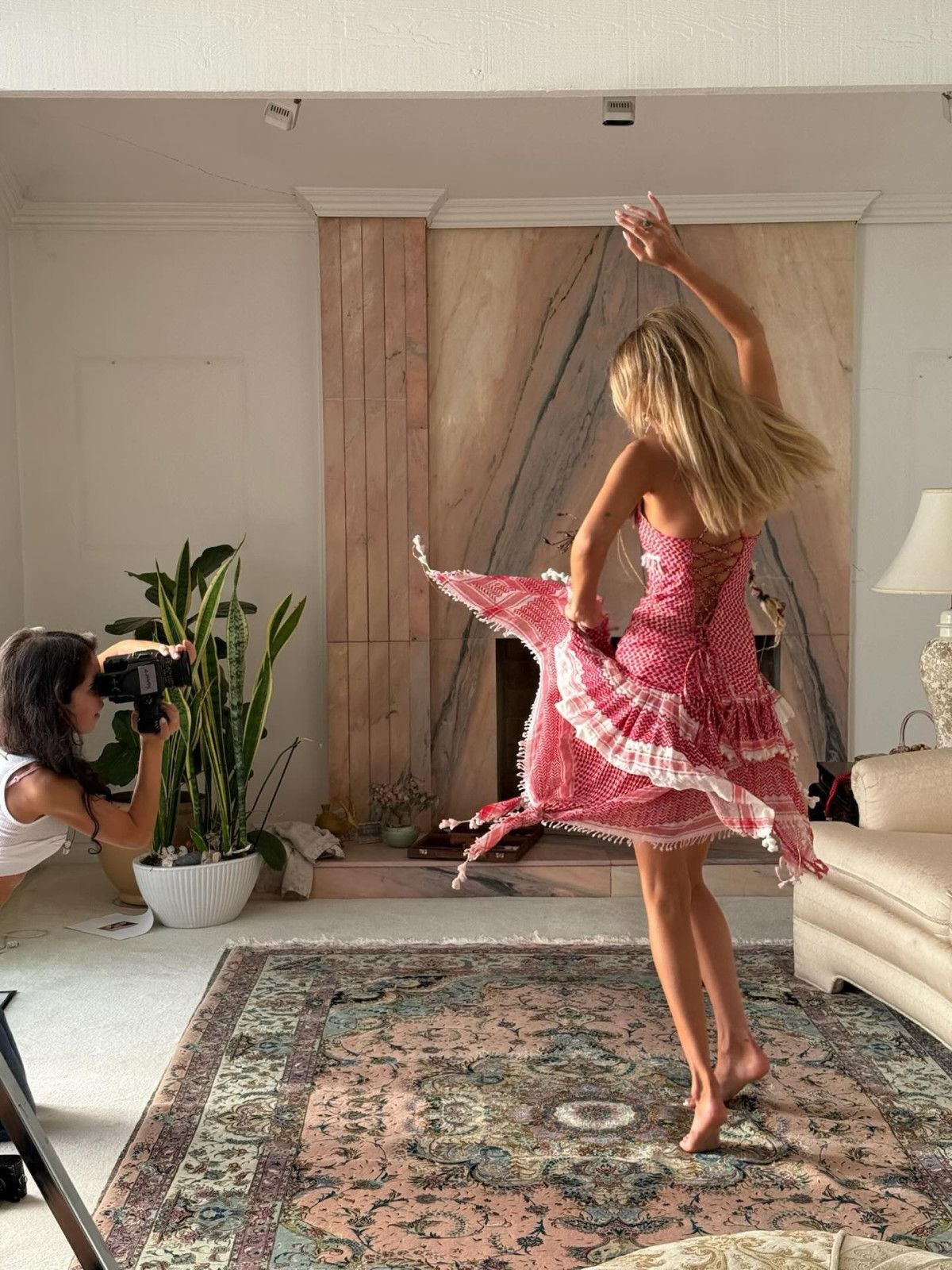 Son olarak Instagram hesabından paylaşım yapan ismin kefiyeli elbisesiyle verdiği poz gündem oldu.