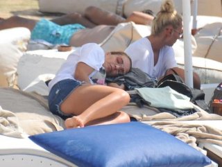 Alaçatı'daki bir otelde havuz başında otururken görüntülenen aşıklar gün boyu gölgede şemsiye altında kalmayı tercih etti. Yakın dostları ile keyifli vakit geçiren çiftin bir yandan düğün hazırlıklarını konuştuğu öğrenildi.