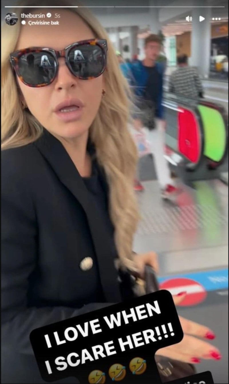O anları cep telefonuyla kaydeden 37 yaşındaki oyuncu, videoyu sosyal medya hesabında paylaştı. Bürsin, videoya "Onu korkuttuğumda çok seviyorum." notunu ekleyerek, takipçilerini gülümsetti.