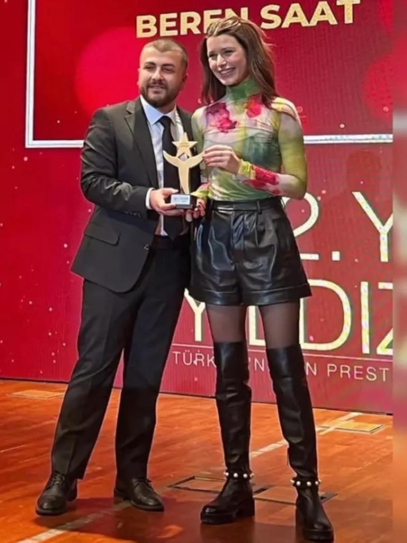 Ödülünü “İstanbul İçin Son Çağrı” filmiyle alan Beren Saat, kıyafet seçimiyle de dikkat çekti. Deri şortu ve çizmeleriyle klasik bir bluzu kombinleyen Saat'in bu tarzı sosyal medyayı ikiye böldü.