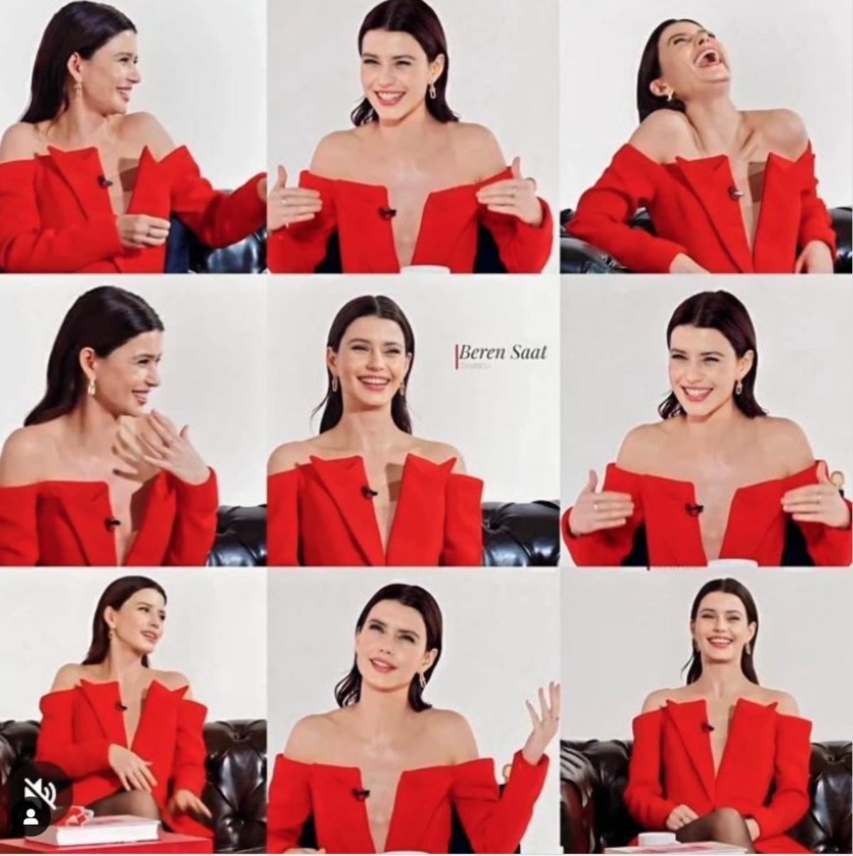 Ekranlara dönmek için hazırlanan güzel oyuncu Sinem Kobal, geçtiğimiz haftalarda katıldığı bir davette kırmızı bir ceket giymişti. Kobal'ın derin göğüs dekolteli bluzunu şimdi de Beren Saat giydi.