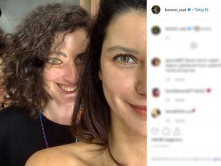 İki arkadaşının gözlerine bant taktığı fotoğrafa Beren Saat, İngilizce olarak 'iş' yazdı.