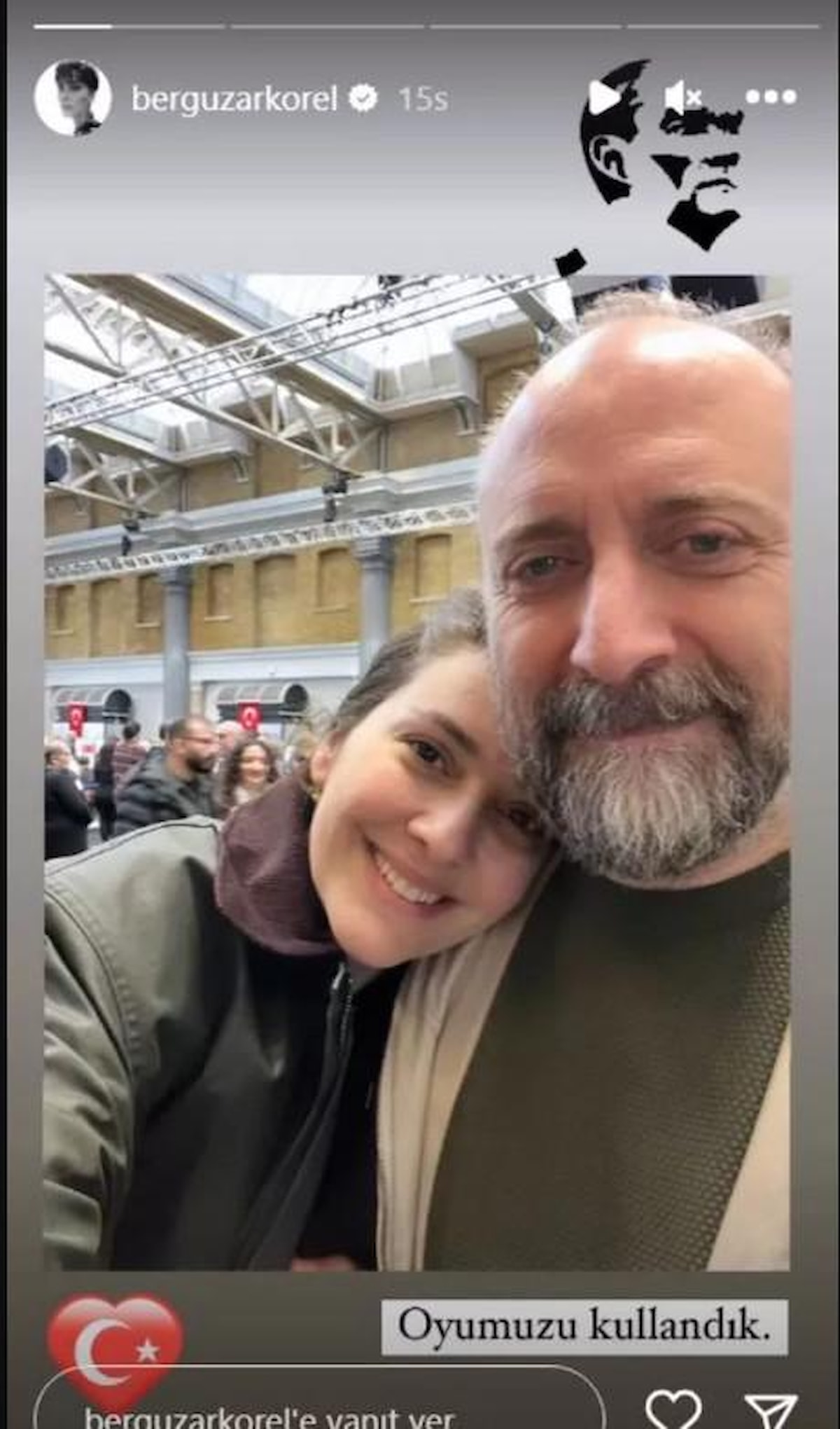 Bergüzar Korel ile Halit Ergenç'in "Oyumuzu kullandık" pozuna beğeni yağdı.