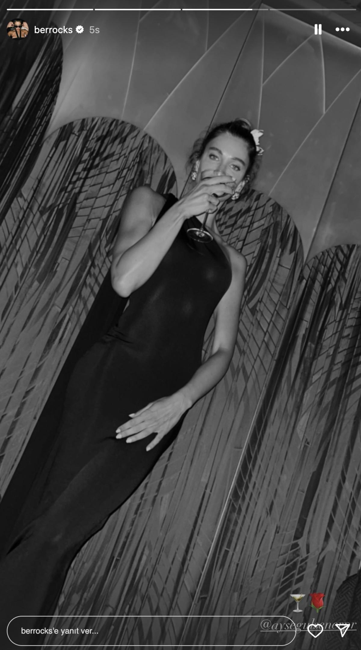 Derin sırt dekolteli fotoğrafını ve dansını paylaşan Tüzünataç, siyah-beyaz bir efekt kullandı.