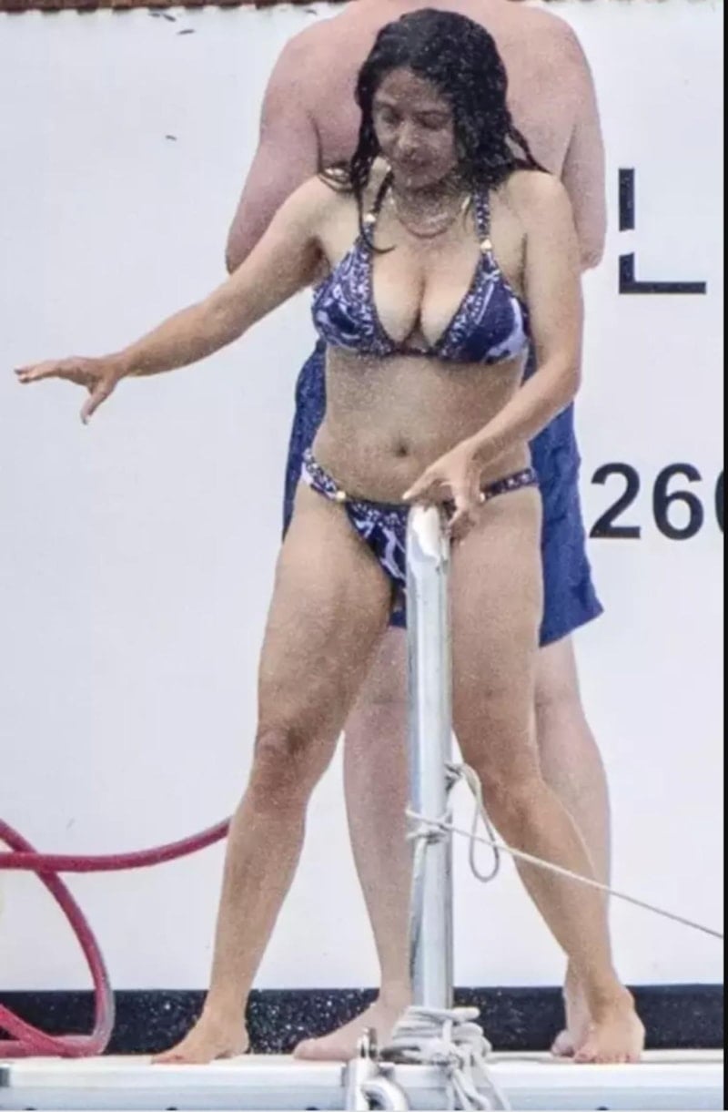 Meksika'da tatilde görüntülenen 56 yaşındaki oyuncu Salma Hayek'in, sosyal medyada paylaştıklarından çok daha farklı olması dikkatlerden kaçmadı.