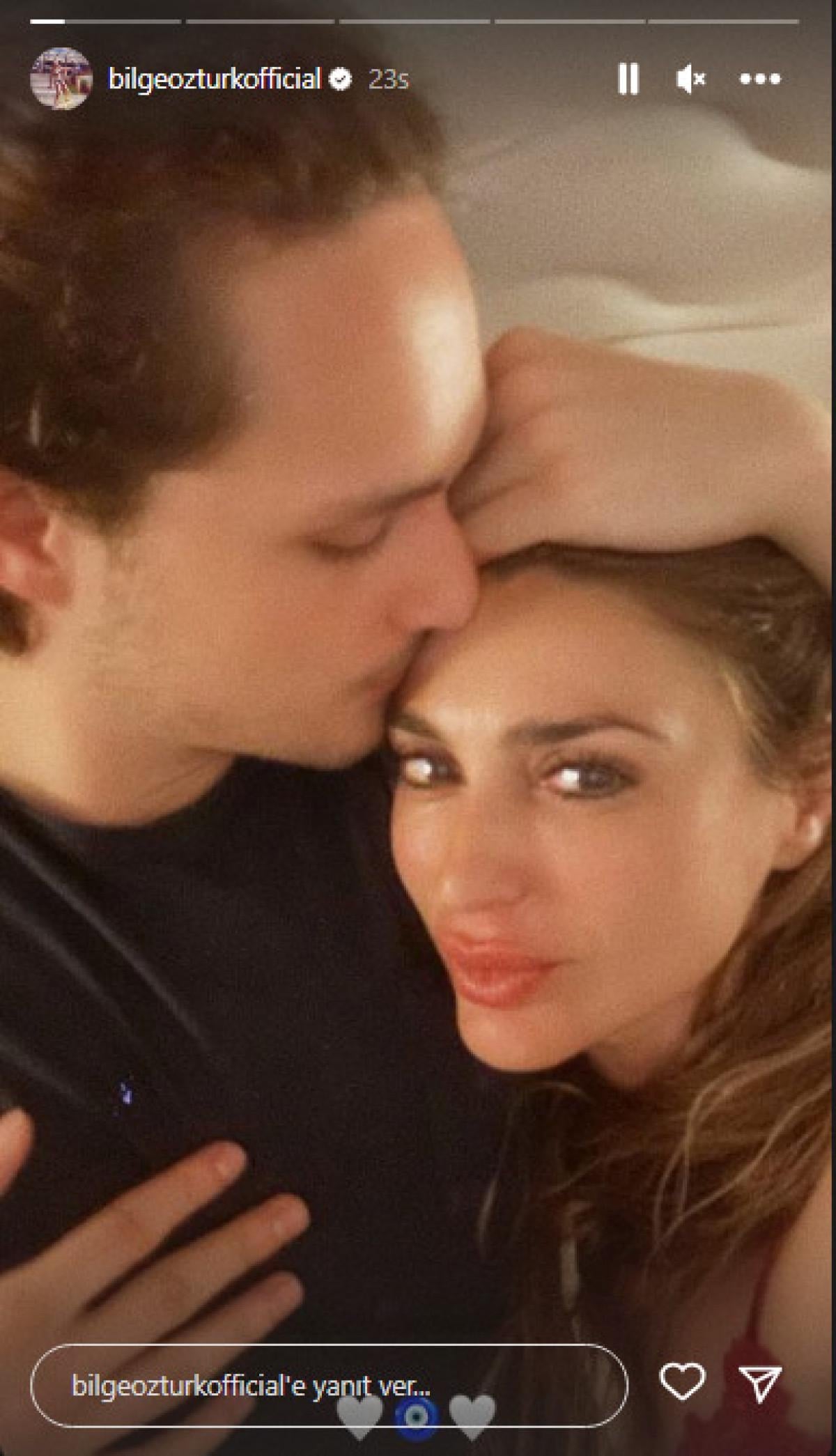 Ünlü isim, hesabının hikayeler bölümünden Erkaya'nın kendisini anlından öptüğü bir kareyi beyaz kalp ve nazar boncuğu emojileriyle paylaştı.