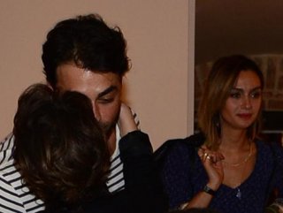 Sergideki eserleri inceleyen eski sevgililer, karşılaşınca ne yapacaklarını şaşırdı. Davete eşi Birce Akalay’la gelen Levendoğlu, ilk şoku atlatınca Evgar’a sarıldı.