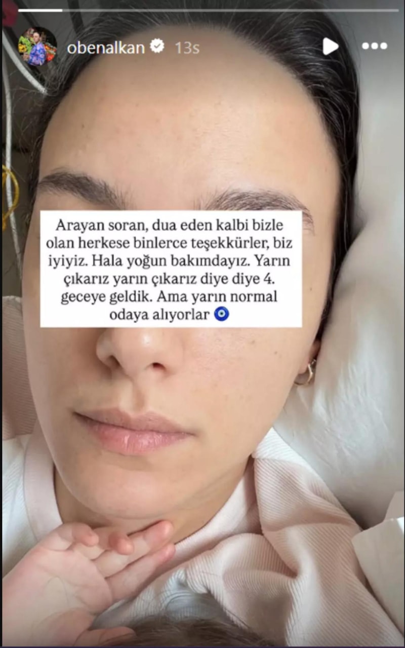 "Arayan, soran, dua eden, kalbi bizimle olan herkese binlerce teşekkürler. Biz iyiyiz. Hâlâ yoğun bakımdayız. 'Yarın çıkar' diye diye dördüncü geceye geldik ama yarın normal odaya alıyorlar."