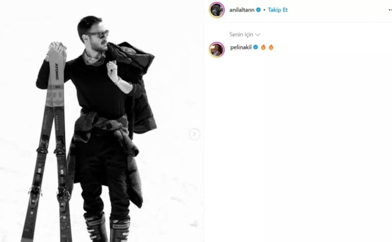 Pelin Akil, sosyal medya hesabından kayak tatilinden bir kareyi yayınlayan eşi Anıl Altan'a alev emojisi koyarak yorum yaptı.
