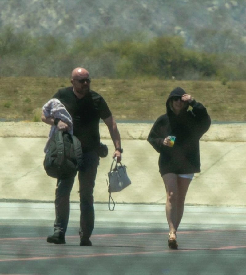 Britney Spears, şort, topuklu sandaletler ve siyah kapüşonlu kıyafetiyle dikkat çekti.