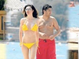 Saygı önceki gün Bodrum'da görüntülendi. Yanında eski eşi Çelik'e benzeyen bir genç vardı . Alkoçlar Butik Otel'de denize girdiler.