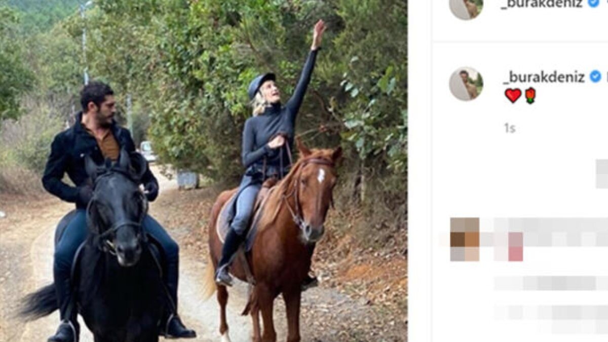 Soydan ile birlikte at üzerinde gezintiye çıkan 30 yaşındaki oyuncu, sevgilisiyle birlikte çekilen fotoğrafını yayınladı. Burak Deniz'in "Hoo oğlum hoo" notunu düştüğü kare, kısa sürede takipçilerinden yoğun ilgi gördü.