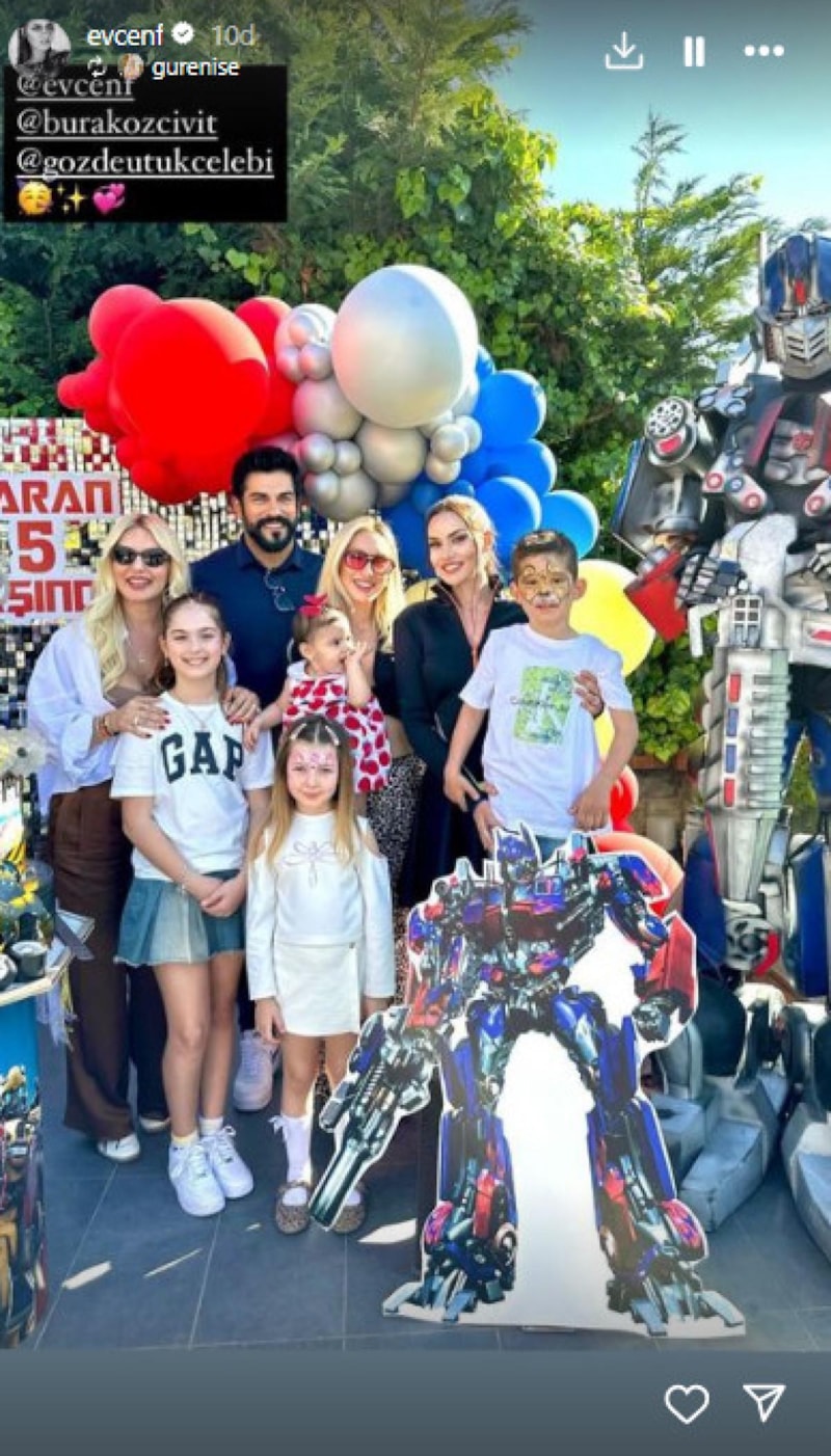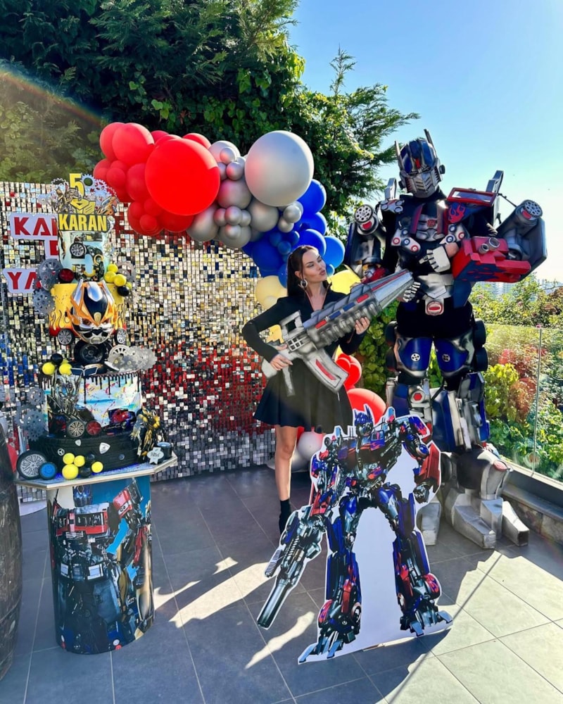Transformers temalı bir doğum günü partisi düzenlenen Karan'ın fotoğraflarını anne Fahriye Evcen, Instagram hesabından paylaştı.