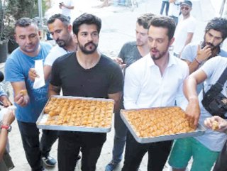 Bir anda şenlik yerine dönen sette iki ünlü isim, tüm set personeliyle tek tek bayramlaşıp baklava ikram ettiler. Set ekibiyle yapılan bayramlaşma sonrası, filmde iki kardeşi canlandıran Burak ve Murat da birbirleriyle bayramlaştılar. Filmde ‘ağabey’ rolünü üstlenen Özçivit, kardeşine elleriyle baklava yedirdi.