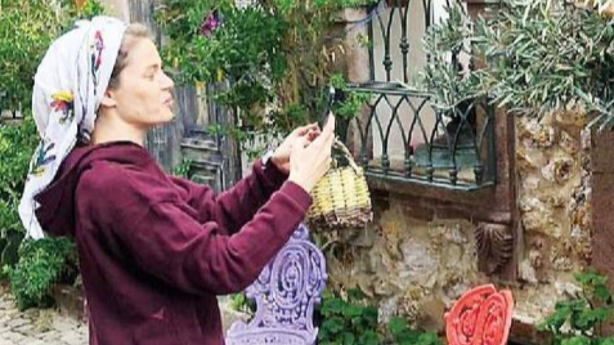 Biricik, hafta sonunu arkadaşlarıyla köyde geçirdi, başında yemenisi, üzerinde şalvarıyla zeytin toplarken çektirdiği fotoğrafları da sosyal medyada paylaştı.