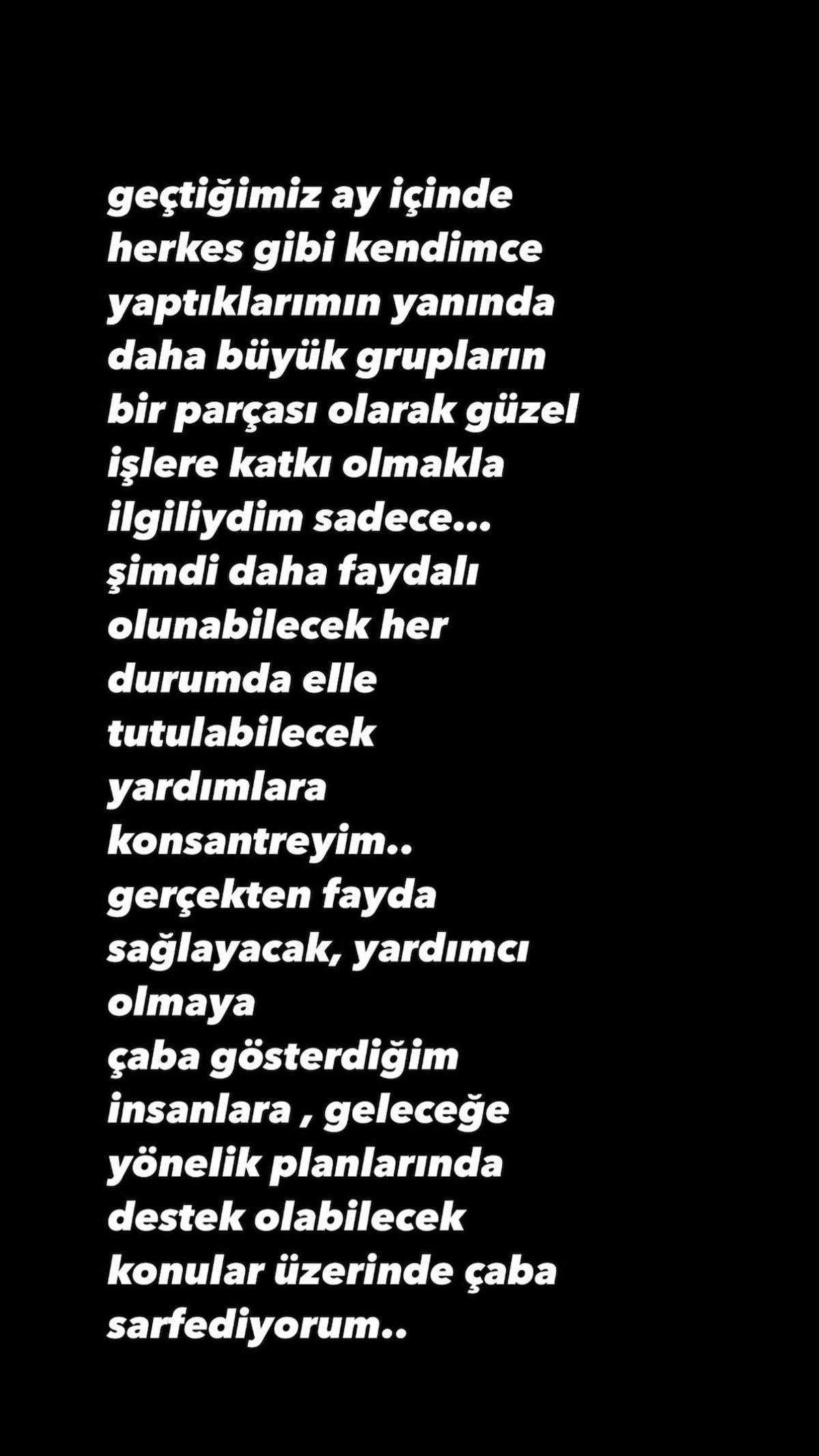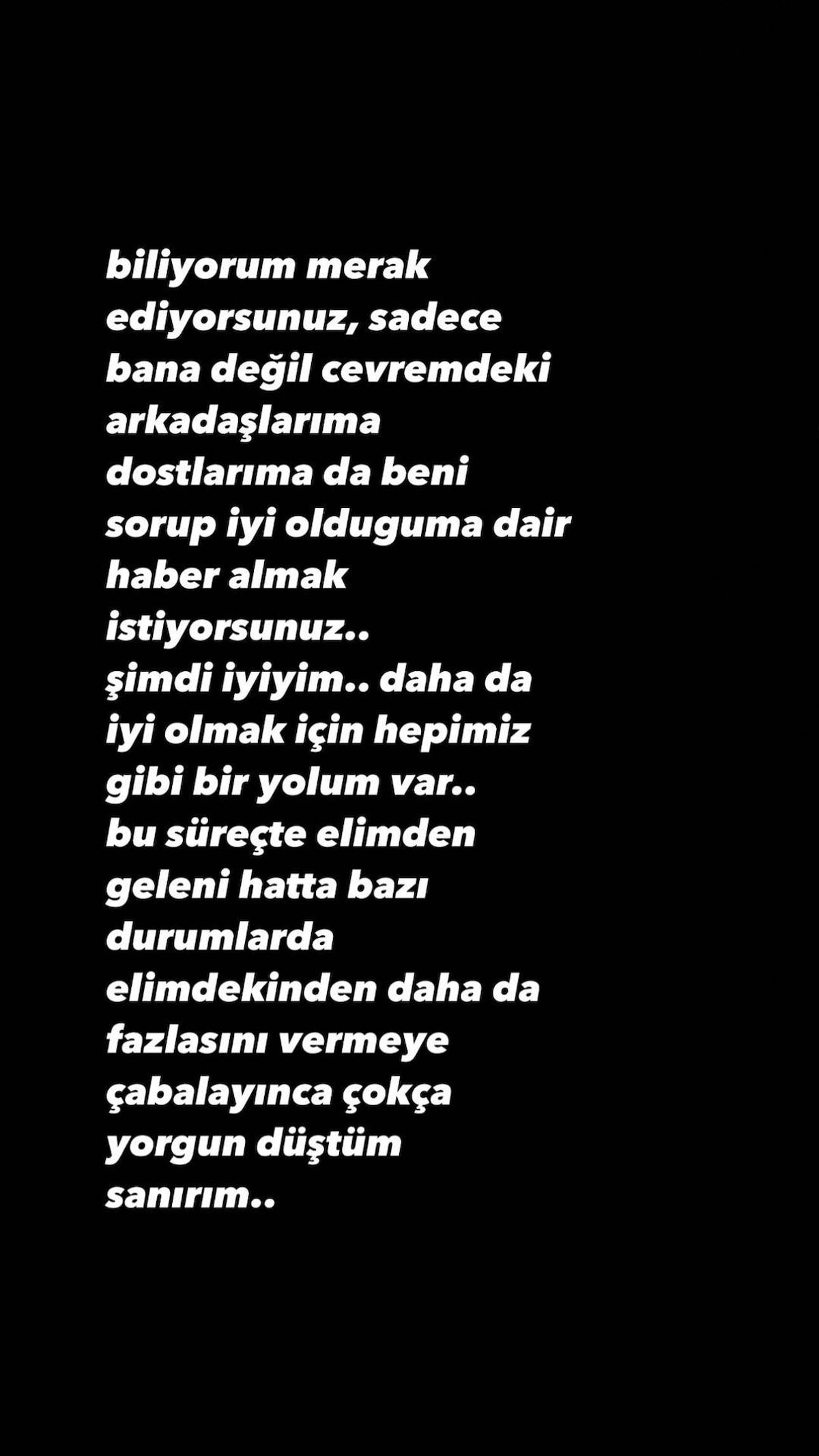 "Beni merak ettiğinizi biliyorum. Şimdi iyiyim. Bu süreçte elimden geleni hatta elimden gelenin fazlasını yapmaya çabalayınca çokça yorgun düştüm.