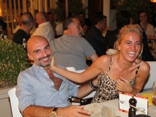 Zincirlikuyu'da bir alışveriş merkezinin içinde bulunan restorantta arkadaşlarıyla yemek yiyen Burcu Esmersoy ve iş adamı sevgilisi Berk Suyabatmaz'ın, neşesi yerindeydi.