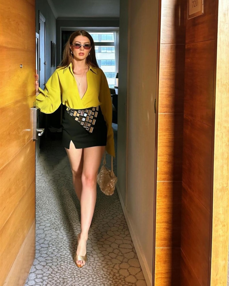 Cesur, açık yeşil renk bluzu ve yırtmaçlı siyah pullu süper mini eteğiyle verdiği pozlarda Özberk'in her zamanki gibi özgüvenini sergilediği görüldü.