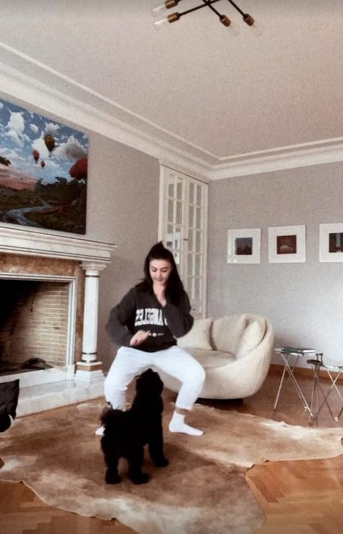 Ev haliyle köpeğiyle dans eden Burcu Özberk, o anları takipçileriyle paylaştı.