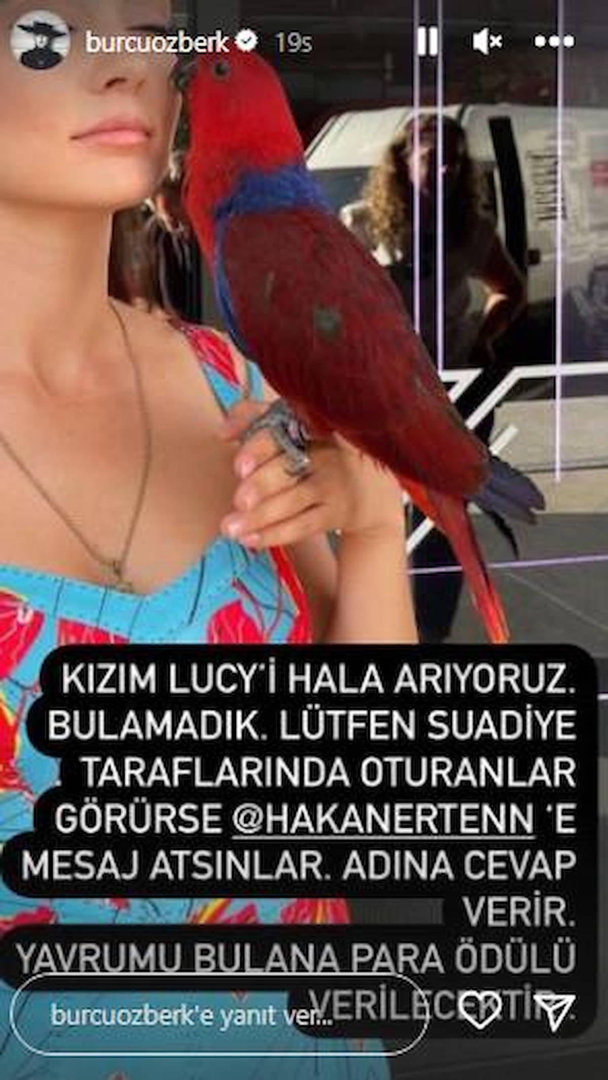 Galatasaray'ın öne çıkan transferi Nicolo Zaniolo ile aşk yaşadığı konuşulan ünlü oyuncu Burcu Özberk'in, çok sevdiği papağanı Lucy evden kaçtı.